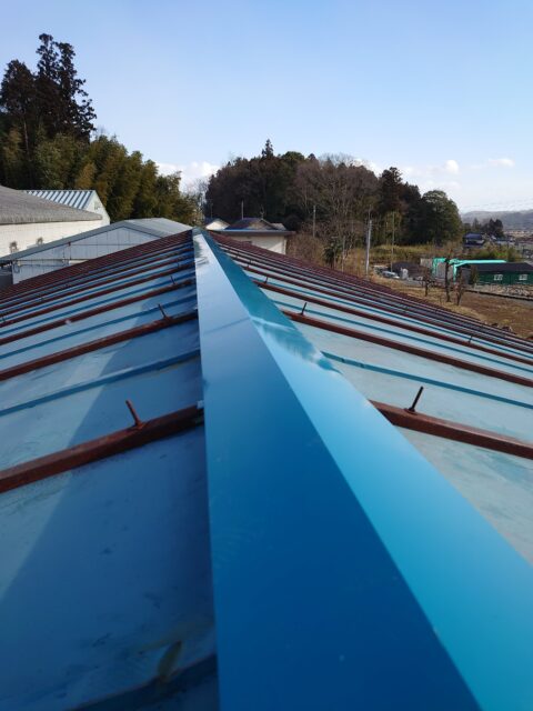最後に棟板金を取り付け、ジョイント部にシールをして完了です。