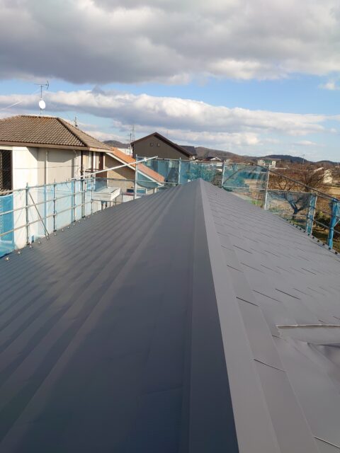 屋根葺き、土台水切り、雨樋で60坪ほどの住宅でしたが、作業日は8日程で完了出来ました。屋根材もカバー工法にも使える材料だったので使いやすかったです。