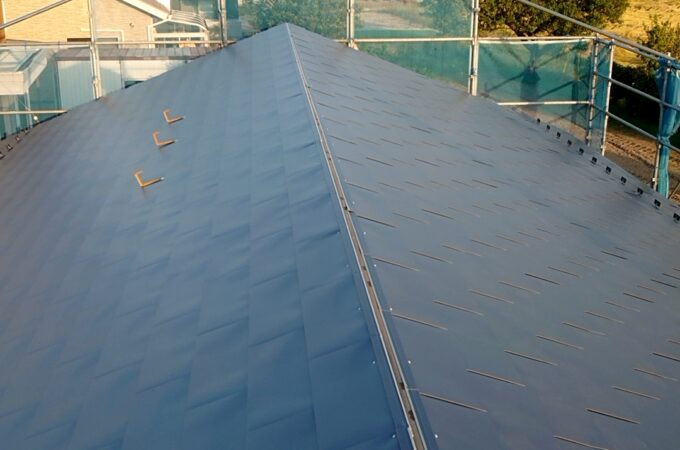 屋根の施工中写真 施工後 雨樋施工後です 屋根葺き、土台水切り、雨樋で60坪ほどの住宅でしたが、作業日は8日程で完了出来ました。屋...